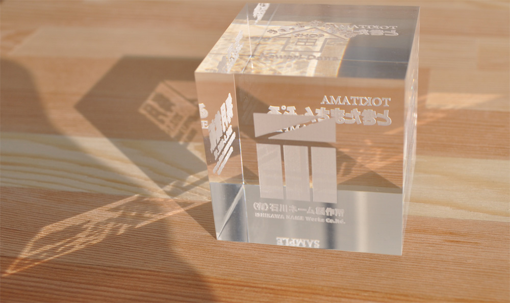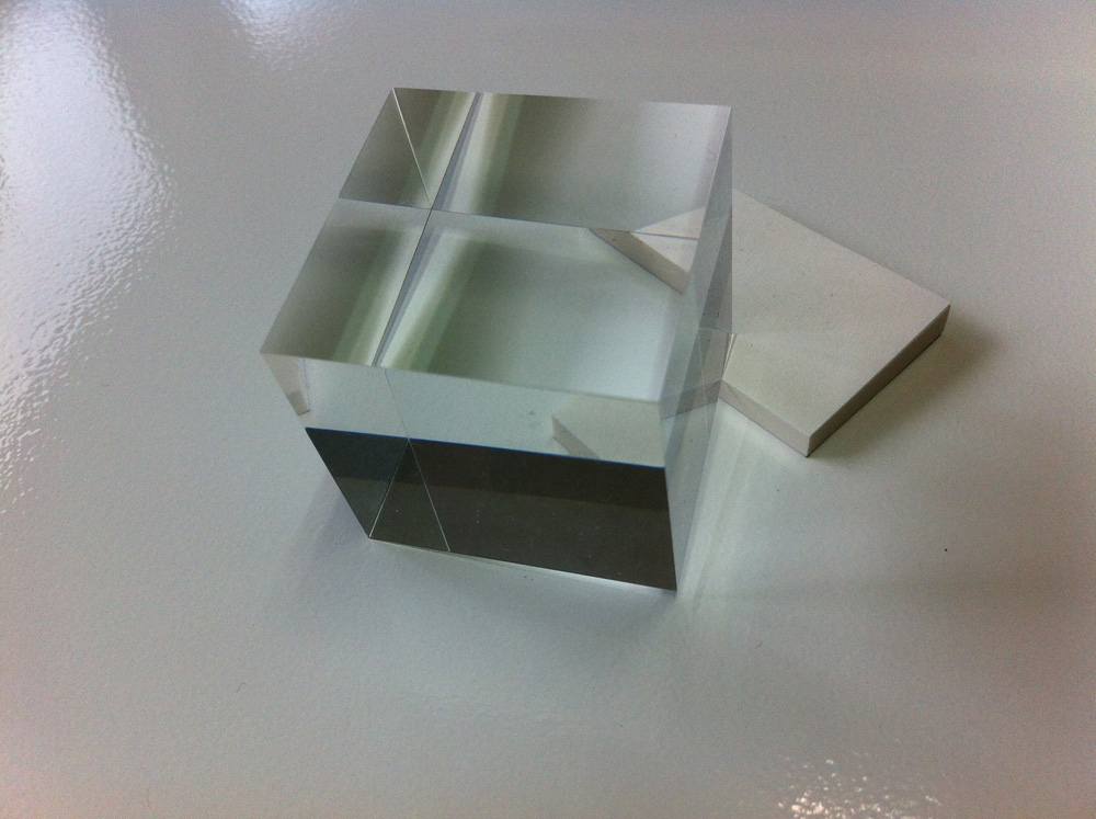 元になる立方体キューブです。アクリル製です。一辺が約40mmです。透明でとても綺麗です。