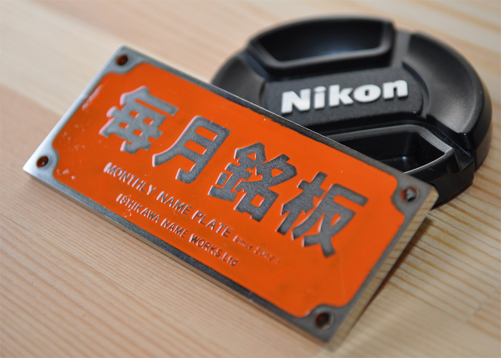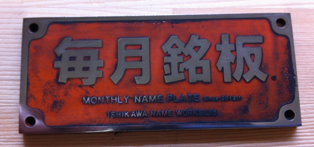 毎月銘板のロゴをすこし変更してみました。材料に厚みがある銘板です。3mmの材厚です。